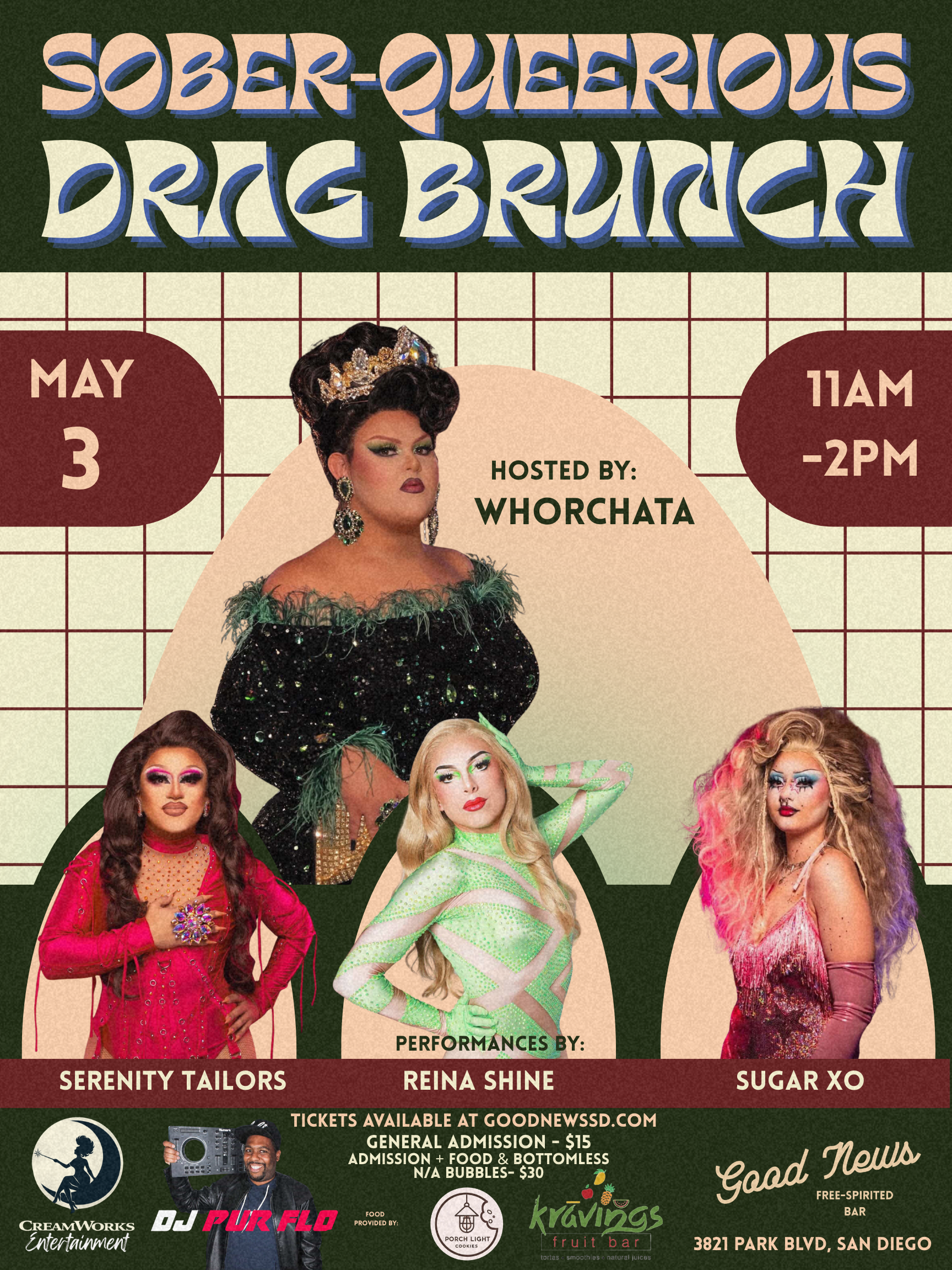 Hosted by Miss Whorchata, join us Sunday May 3, 11-2pm for a full cast of sober drag artists ready to show you that you can still have an incredible Sunday Funday while staying present, taking care of yourself, and not waking up hungover.